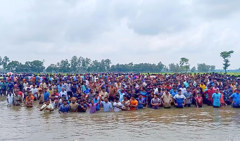 कूछविहार के काशियार बारूनी इलाके के पठानतुली गांव के पास बांग्लादेश की सीमा पर ऊंचे तार लगे हुए हैं। वहीं बीच में एक बड़ा नाला भी है। बांग्लादेश से भागे हजारों लोग इस नाले में खड़े होकर गिड़गिड़ाने रहे हैं। बीएसएफ के जवानों ने इन्हें सीमा से 150 गज की दूरी पर जीरो पॉइंट पर ही रोक दिया। बीएसएफ के जवानों ने उनसे अपील की कि वे अपने घरों को लौट जाएं लेकिन कोई भी तैयार ना हुआ। ये लोग बांग्लादेश के रंगपुर जिले के दोई खावा और गेंदुगुरी गांव के हैं।