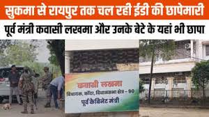 प्रवर्तन निदेशालय ने शनिवार को पूर्व आबकारी मंत्री कवासी लखमा, उनके बेटे और कुछ अन्य कांग्रेस नेताओं के ठिकानों पर छापेमारी की, छत्तीसगढ़ सरकार में मंत्री रहे और वर्तमान में कांग्रेस विधायक कवासी लखमा, उनके बेटे और कांग्रेस नेता रामभुवन के घर, ईडी ने छापेमारी की है। पीटीआई के मुताबिक राज्य में कथित शराब घोटाले से जुड़ी मनी लॉन्ड्रिंग जांच के तहत यह छापेमारी की गई है।